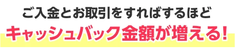 キャンペーン期間中の入出金差額と新規取引数量に応じて最大300万円キャッシュバックいたします。