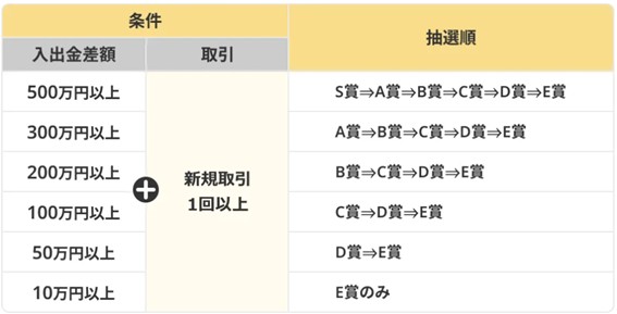取引条件:入出金差額に応じて賞品ごとに取引量が変更となります。