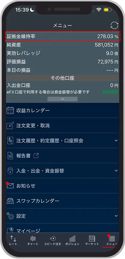 証拠金維持率の確認方法